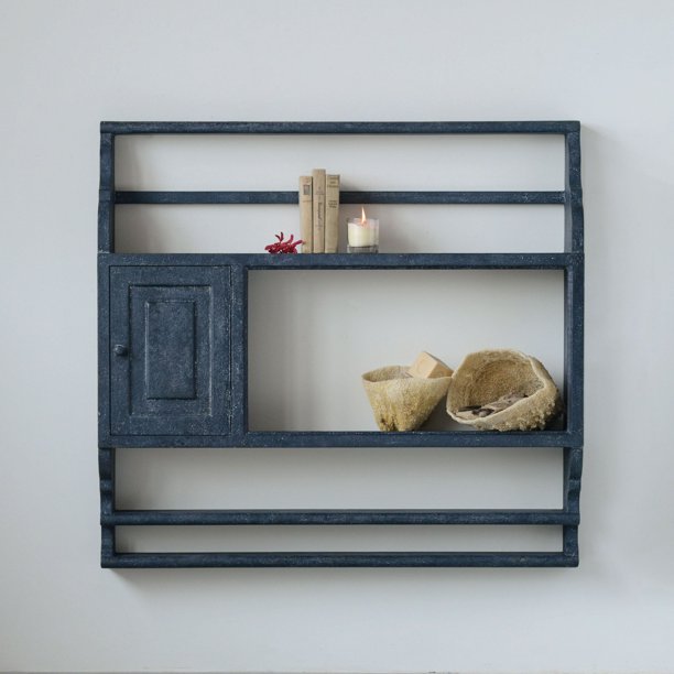 Primitive Style Navy Blue Accent Drawer Wall Shelf