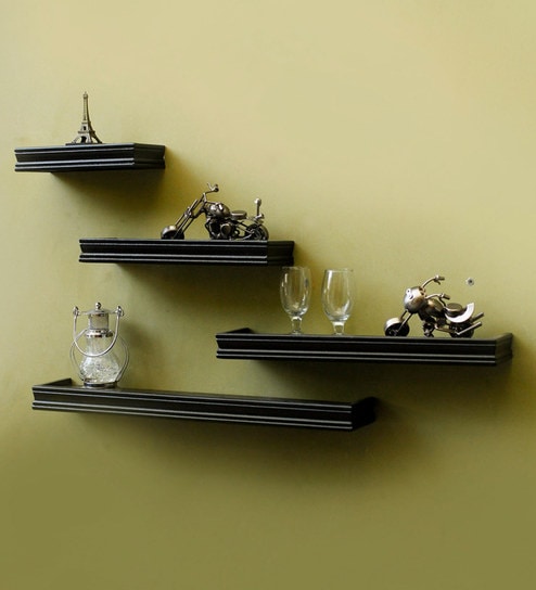 Buy Engineered Wood Floating Wall Shelf In Black Colour By