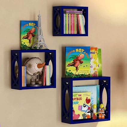 Blue Wall Shelf Cute Coat Rack Wood Cube Jalerson