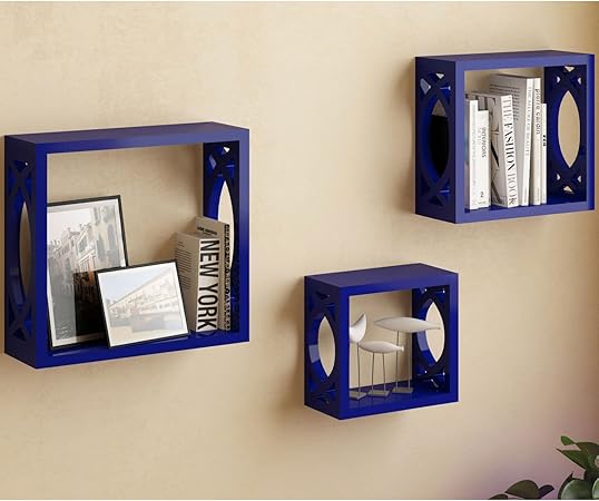 Set Of 3 Navy Blue Square Cube Wall Shelves Larger Shelf Set
