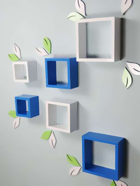 Buy Online Home Decor Navy Blue White Nesting Square Wooden Wall