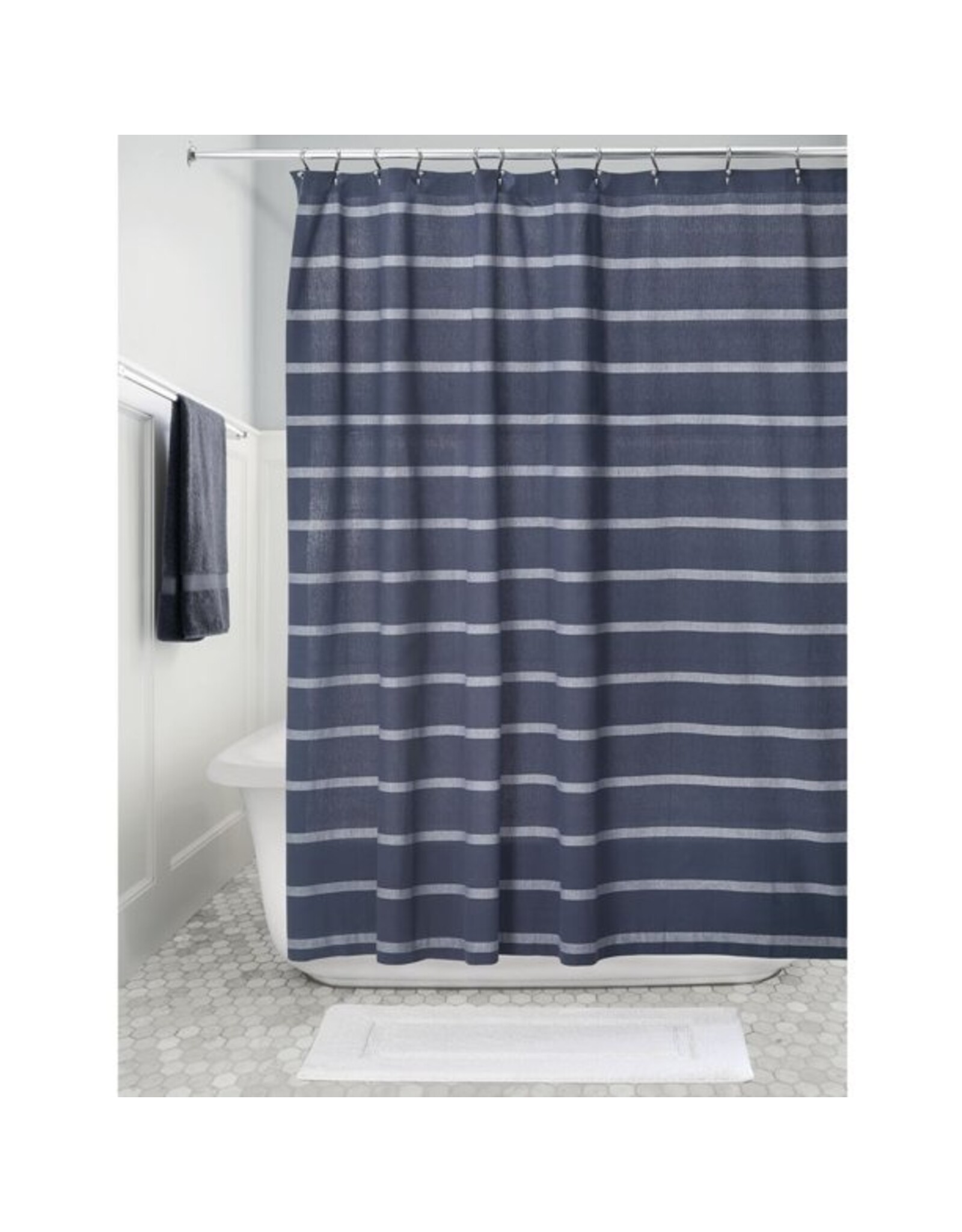 73722 Thin Stripe Shower Curtain Navy White Lancelotti Housewares