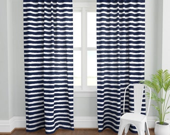 Custom Navy Blue Striped Curtains Stripes Color Blocked