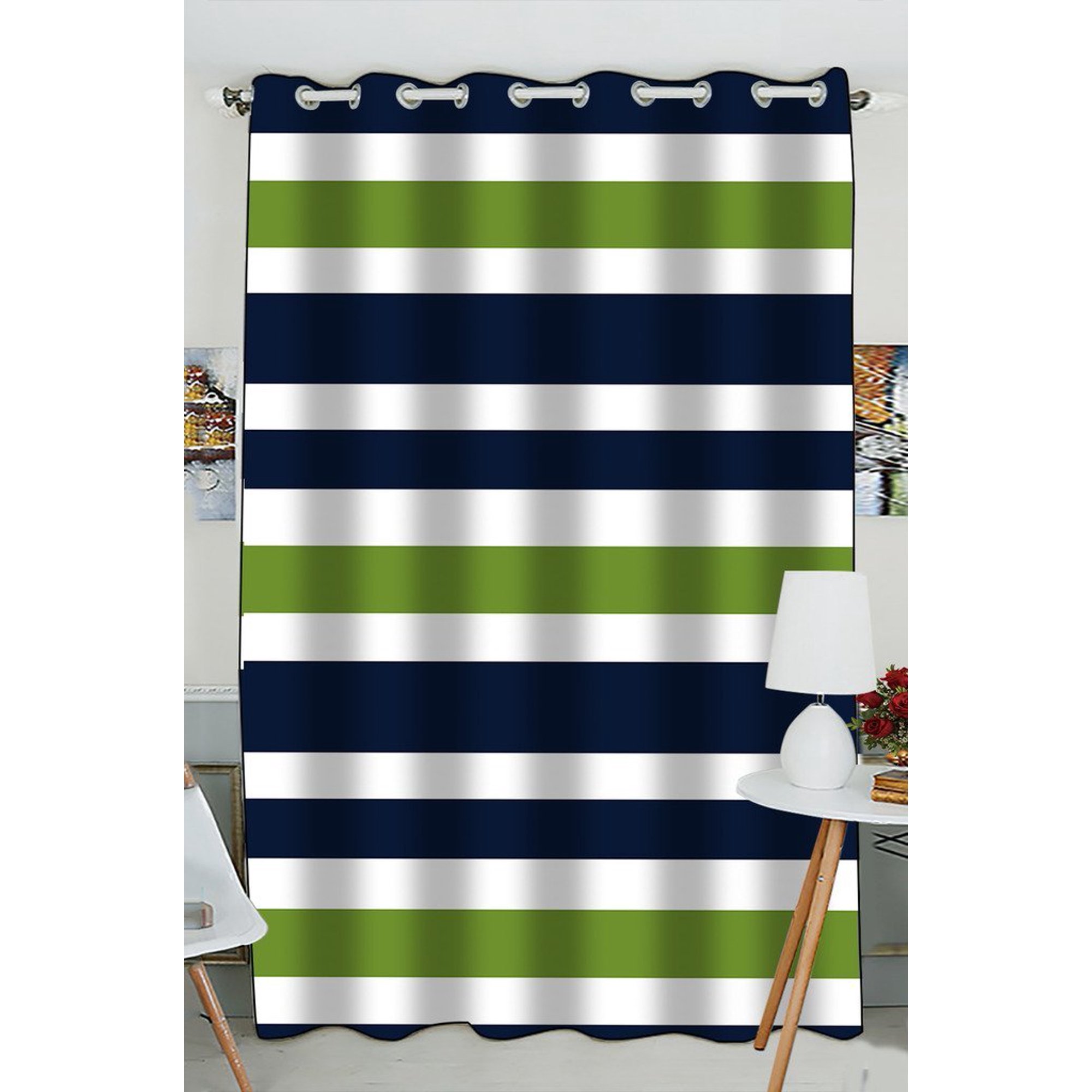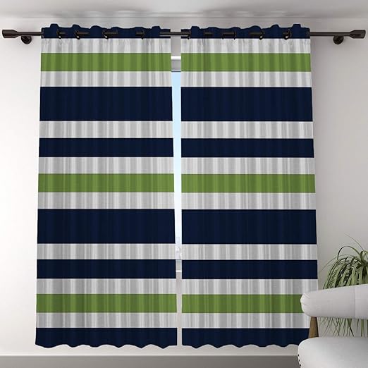 Gckg Navy Blue Green And White Stripe Window Curtain Kitchen