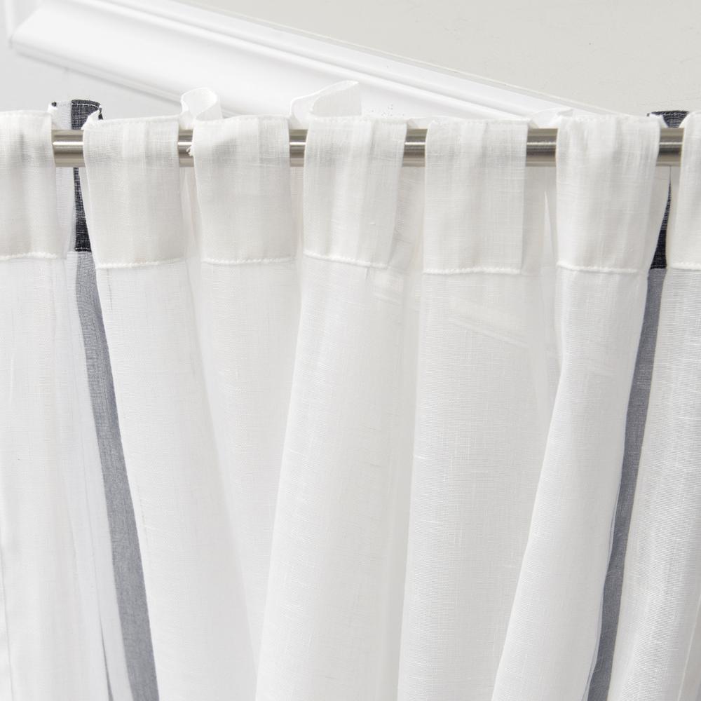 Best Home Fashion 84 In L Sheer Faux Linen Navy Triple Stripe