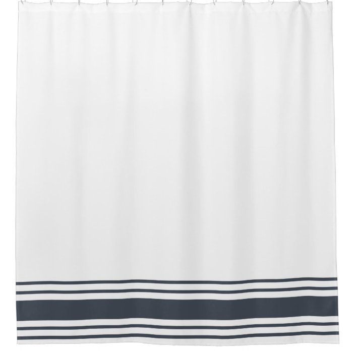 Navy And White Classic Stripe Border Monogram Shower Curtain