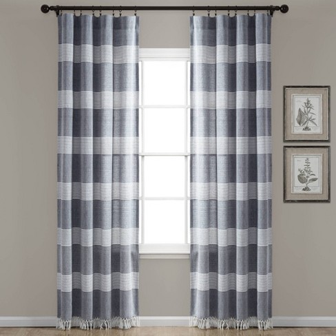 Navy Blue White Lush Stripe Curtain Plaid Modern Window Coverings