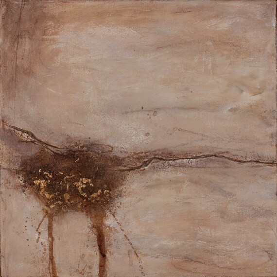 Abstract Art Canvas Painting Neutral Brown Gold Wall Art