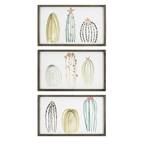 Set Of 3 Neutral Color Cactus Framed Art Wall Decor 20 5