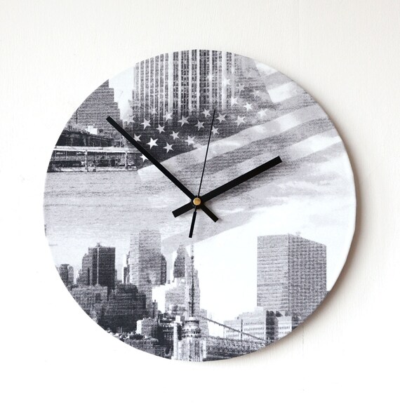 New York Wall Clock Decoupage Fabric Clock Stars And Etsy