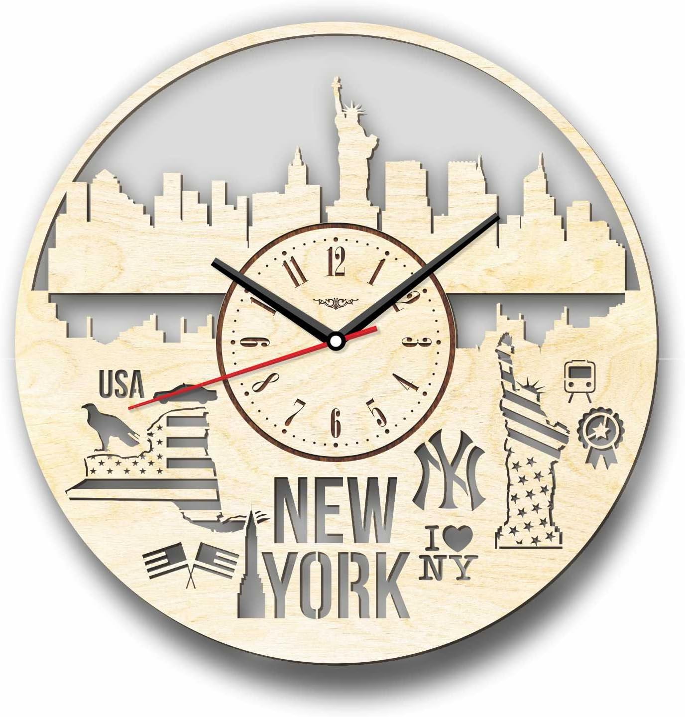 New York Wood Wall Clock Travel Gift For Woman Handmade Decor