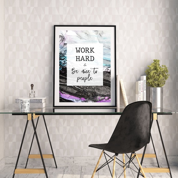 Motivational Quote Office Decor Work Hard And Be Nice To Etsy