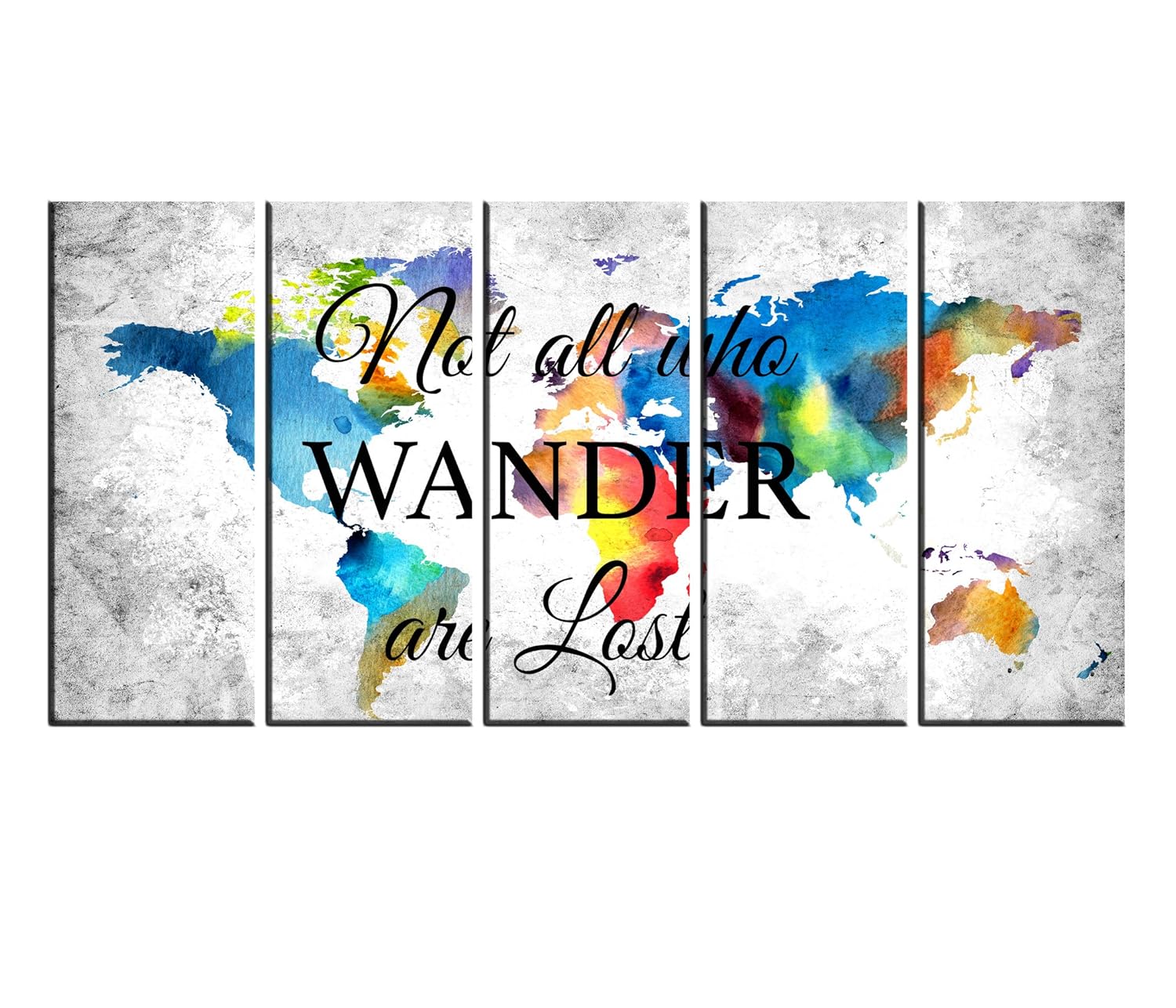 Amazon Com World Map Canvas Wall Art Not All Who Wander Are Lost