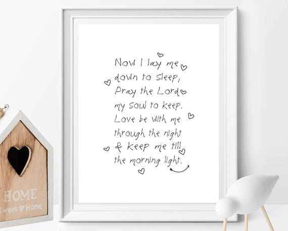 Printable Nursery Art Now I Lay Me Down To Sleep Bedtime Prayer