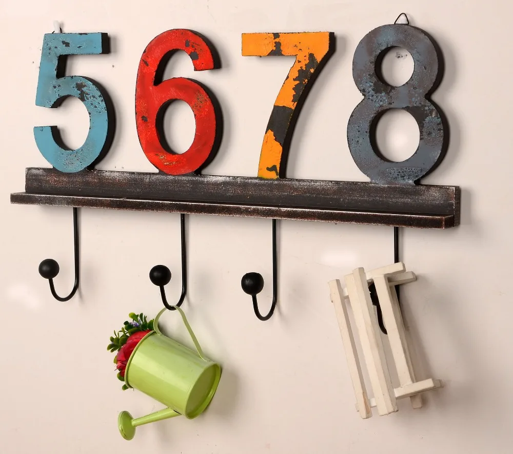 Free Shipping Zakka Vintage Wall Hanger With 4 Hooks Number 5678 Wall Hook Coat Hat Hanger Craft Gift Wall Decoration Hat Hanger Vintage Wall Hangerhanger With