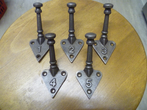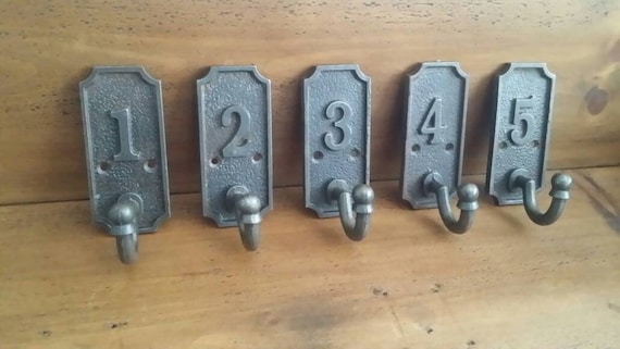 5 Numbered School Pegs Wall Coat Hooks Rack Metal Cast Etsy