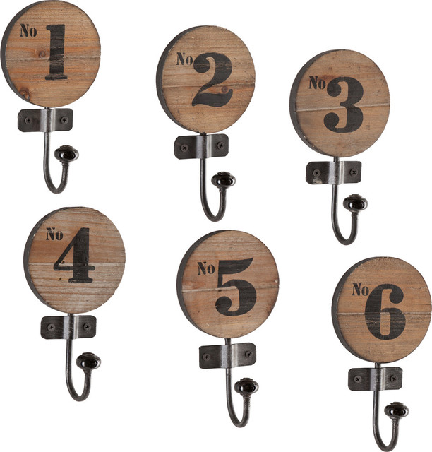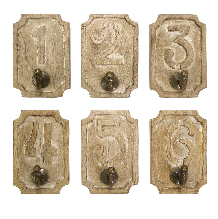 Imax Mason Natural Wash Finish Numbered Wall Hooks Set Of 6 Im 5562 6 At Homelement Com