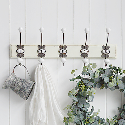 5 Double Ceramic Coat Hooks On Ivory Wood Large Distressed Numbered Hallway Wall For Sale Ebay