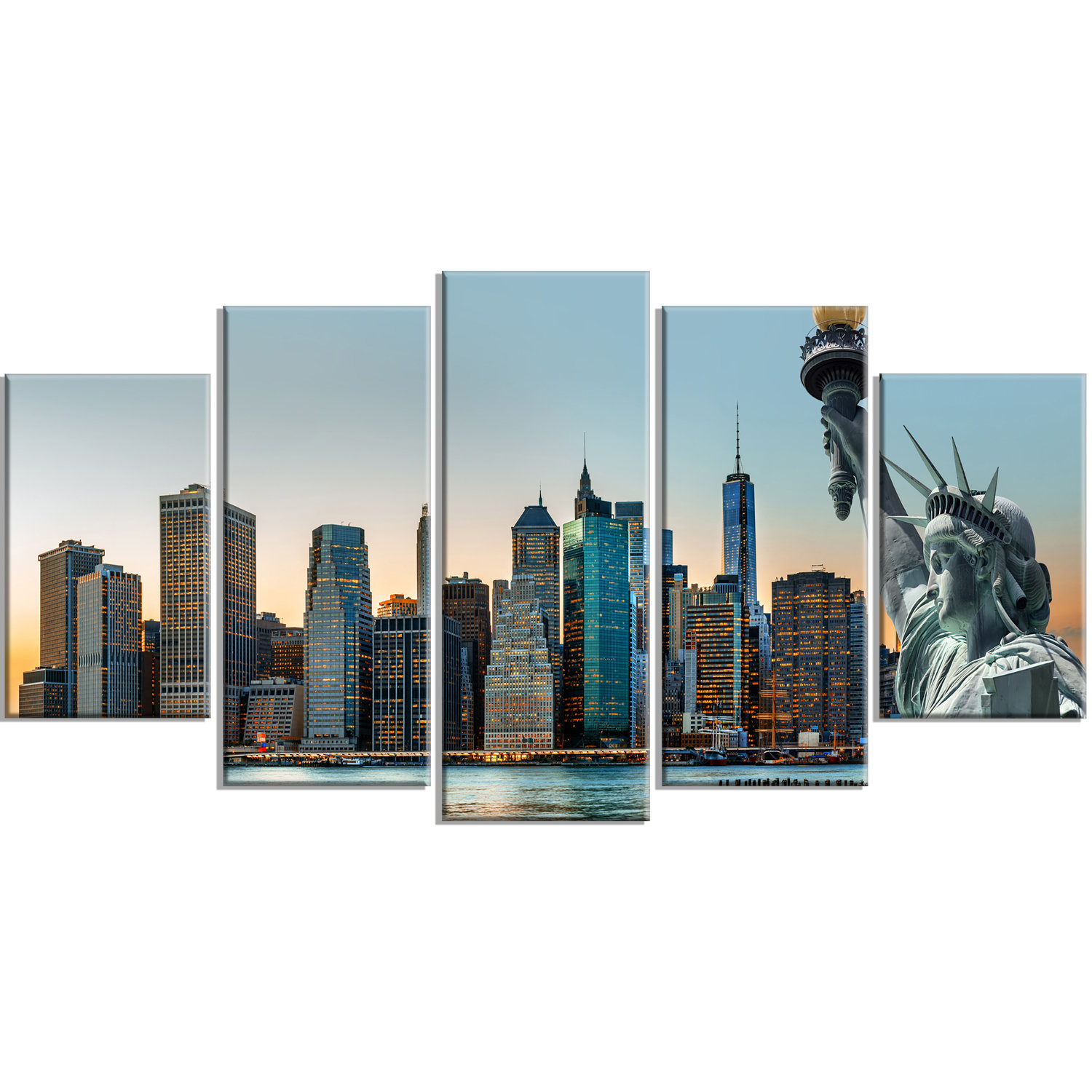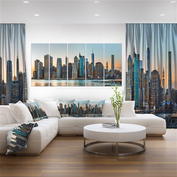 Designart New York City Skyline Panorama 5 Piece Wall Art On
