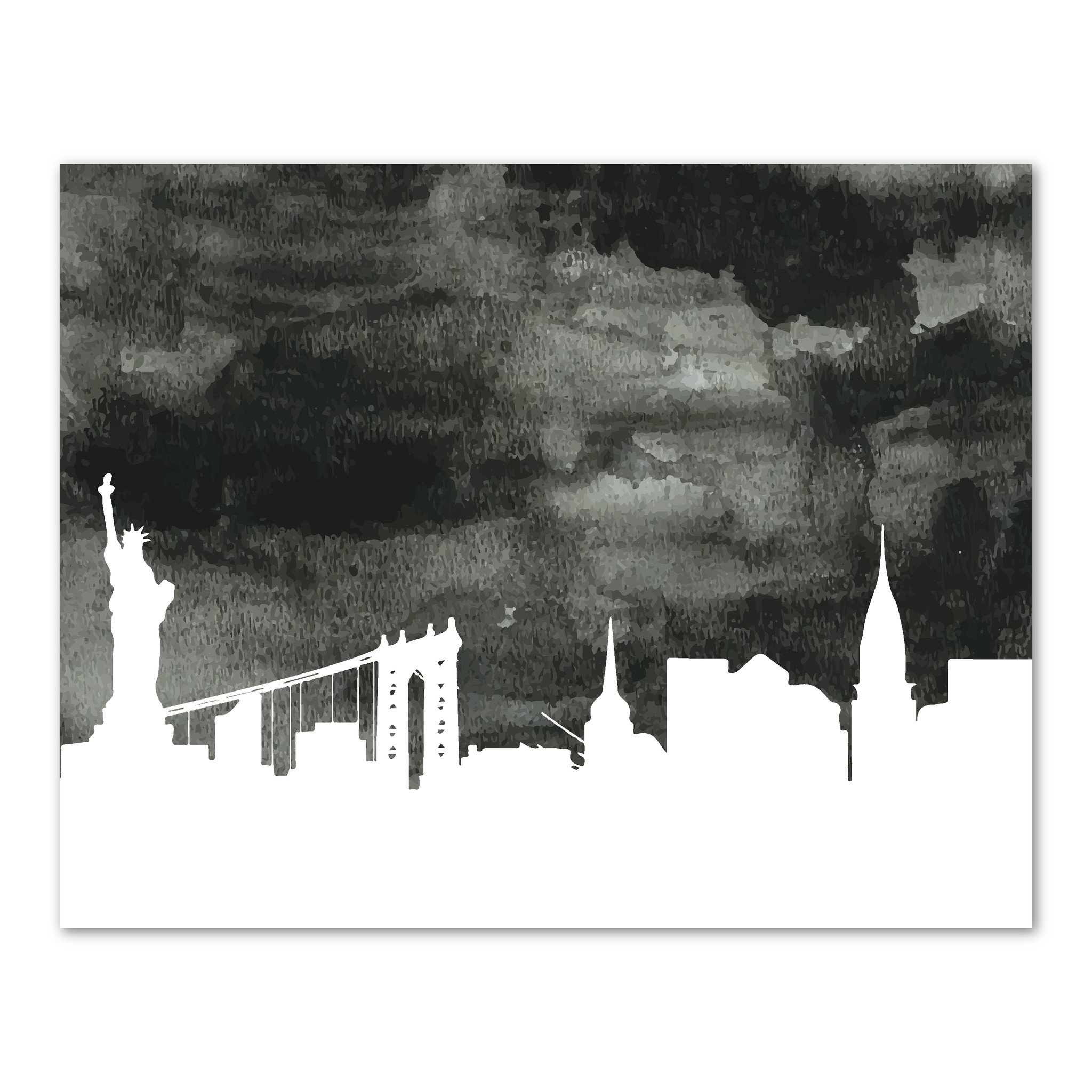 Ny New York City Skyline Nyc Black White Watercolor Art Canvas