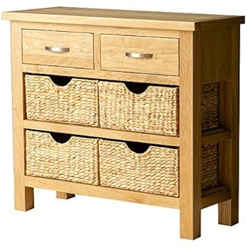 Roselandfurniture London Oak Console Table With Baskets And 2 Drawers Solid Wooden Hall Storage Cabinet For Living Room Bedroom Hallway Kitchen Or Bathroom Fully Assembled Amazon Co Uk Kitchen Home