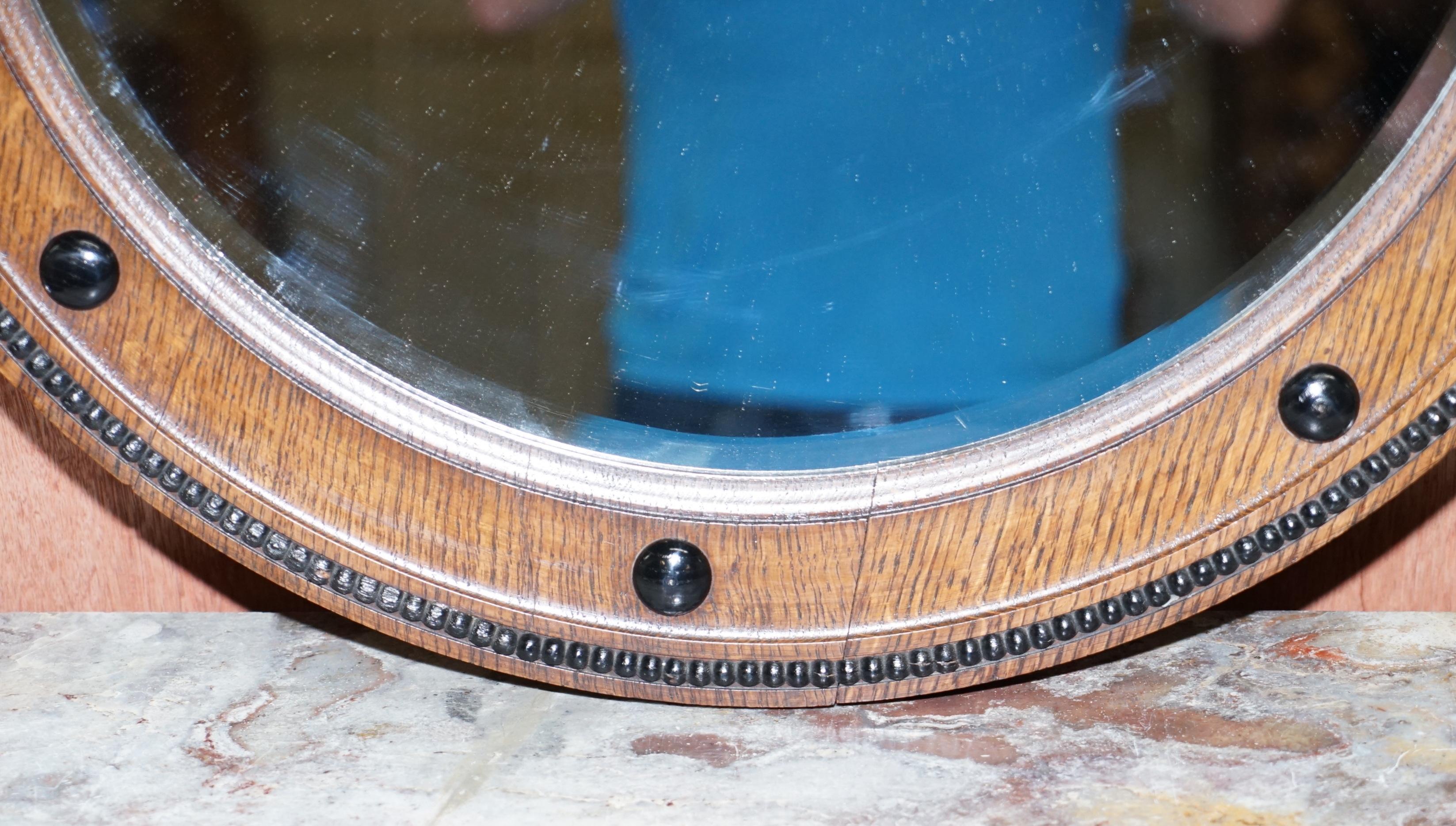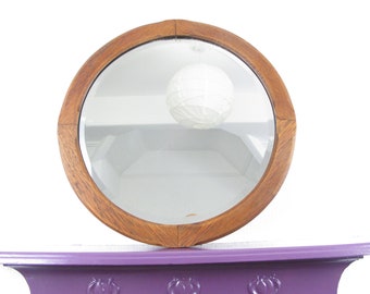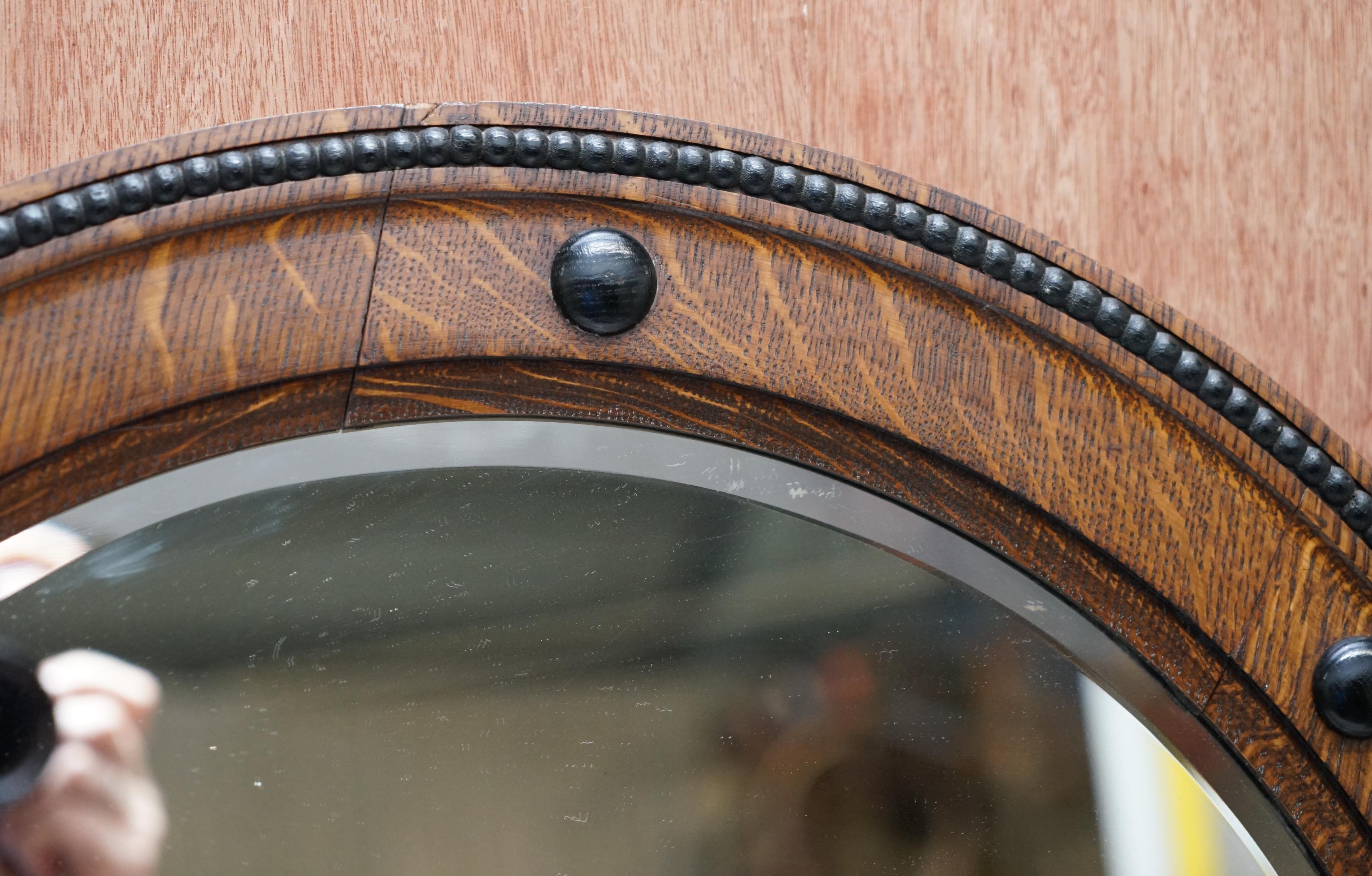 Stunning 1920 1930s Art Deco Round Oak Framed Wall Mirror