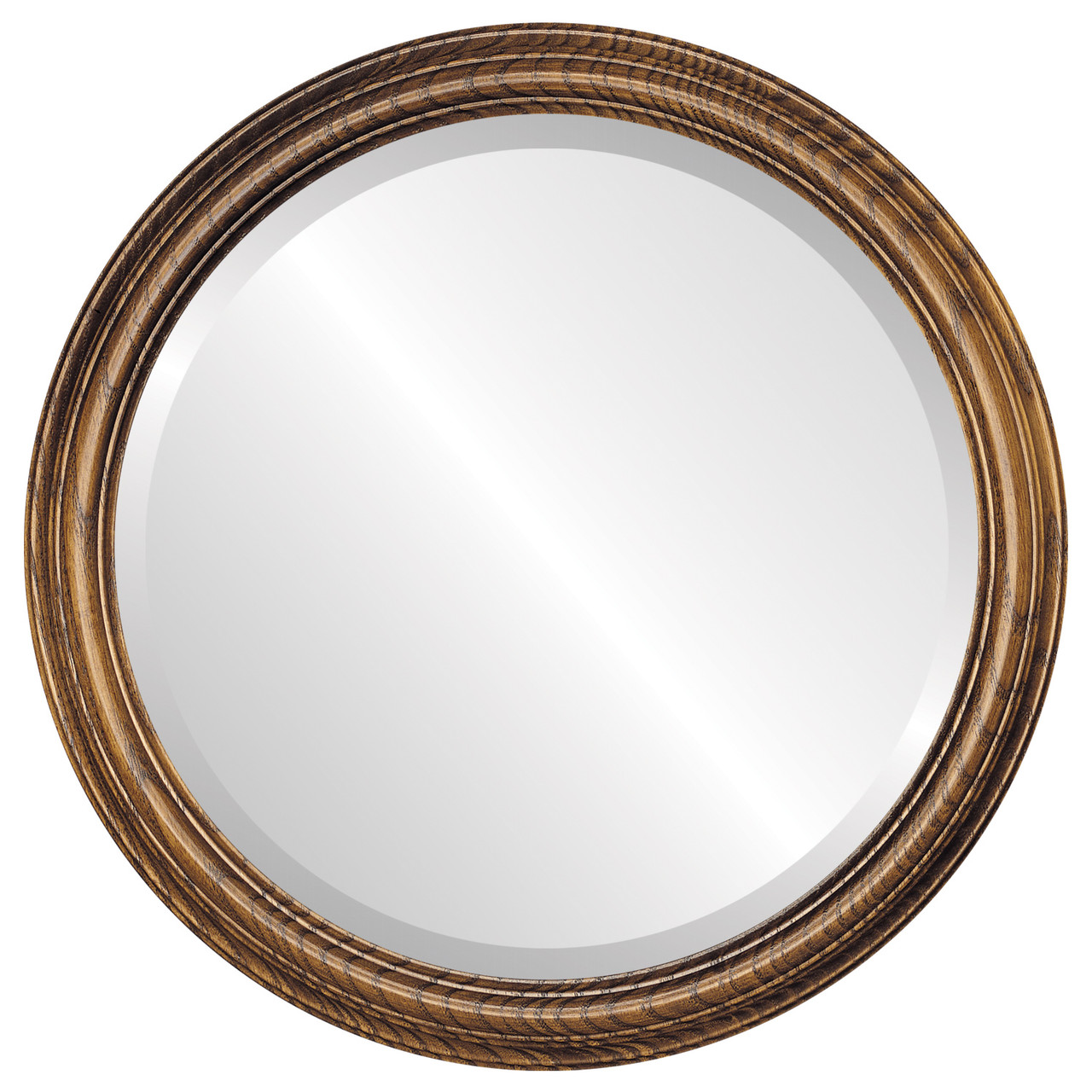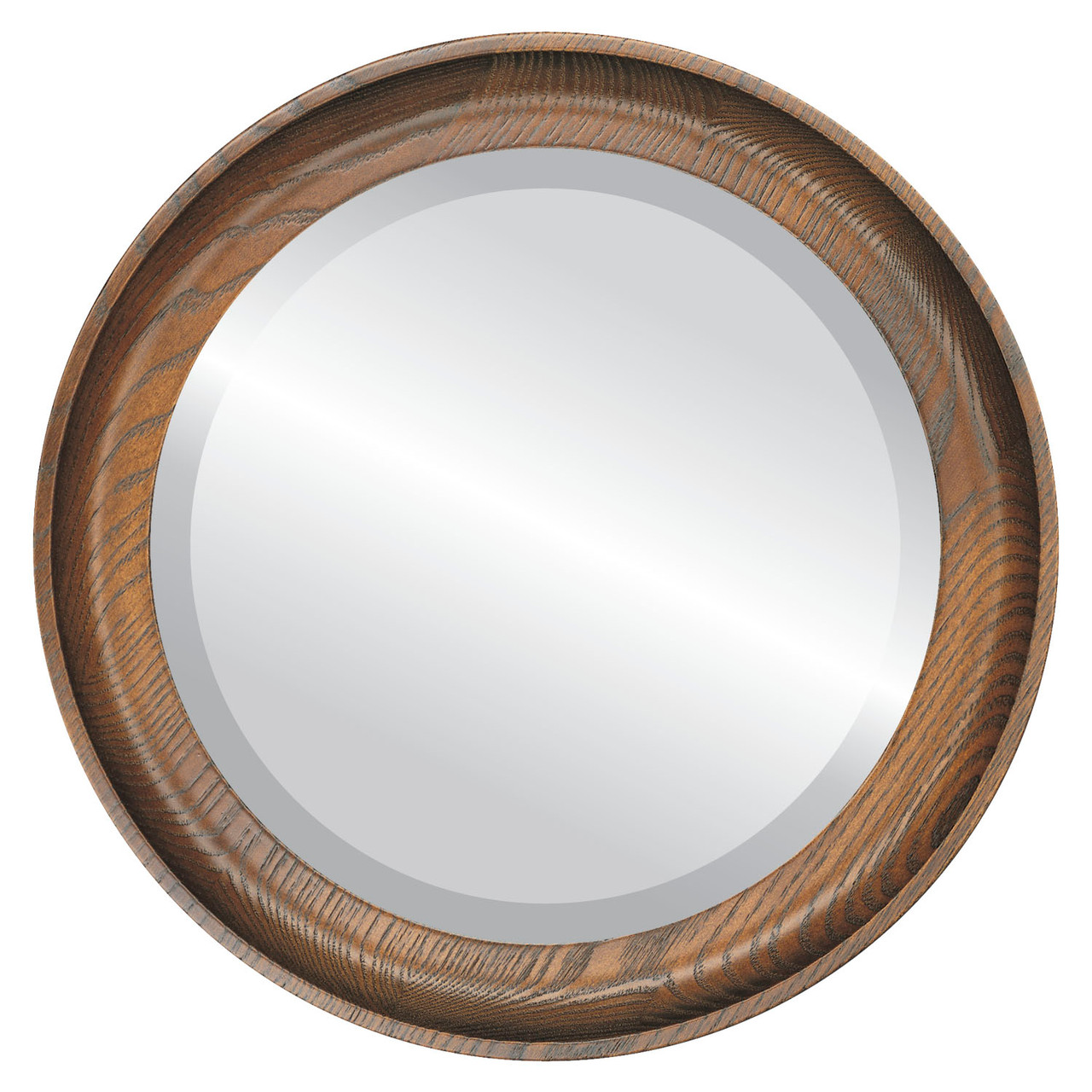 Vancouver Framed Round Mirror In Honey Oak Rustic Wall Mirrors