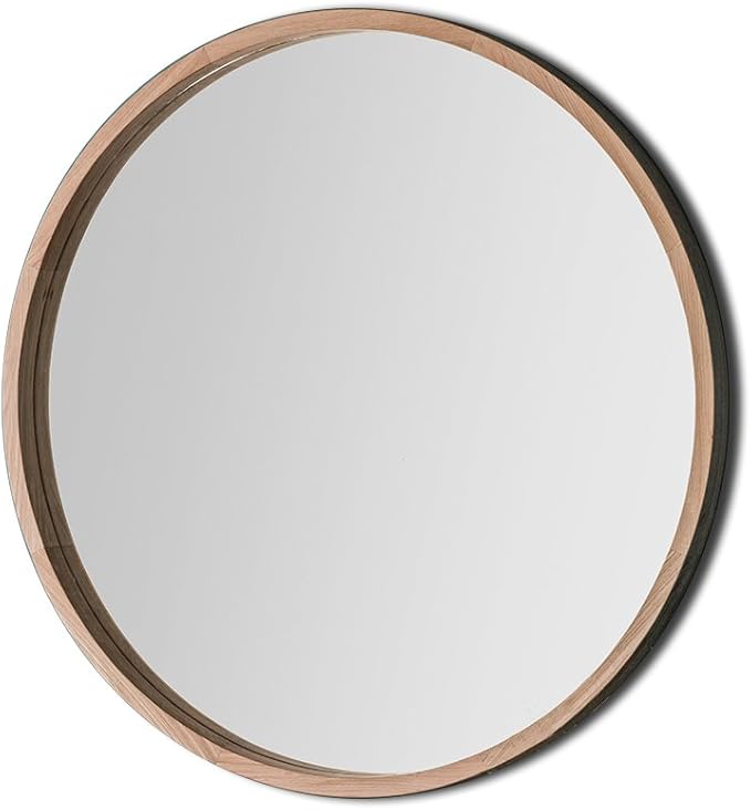 60cm Wooden Framed Round Mirror Natural Scandi Modern Look Light