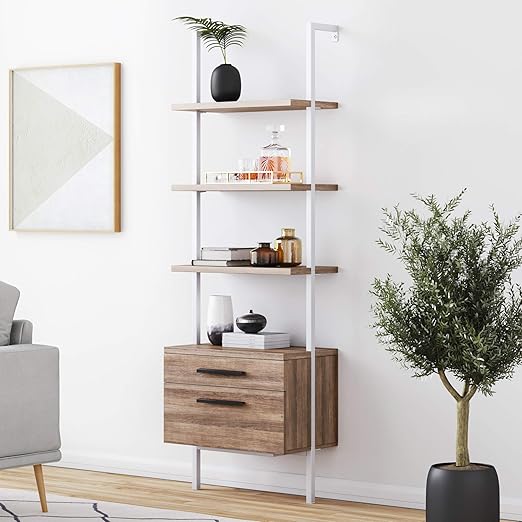 Leaning Ladder Shelf With Drawers