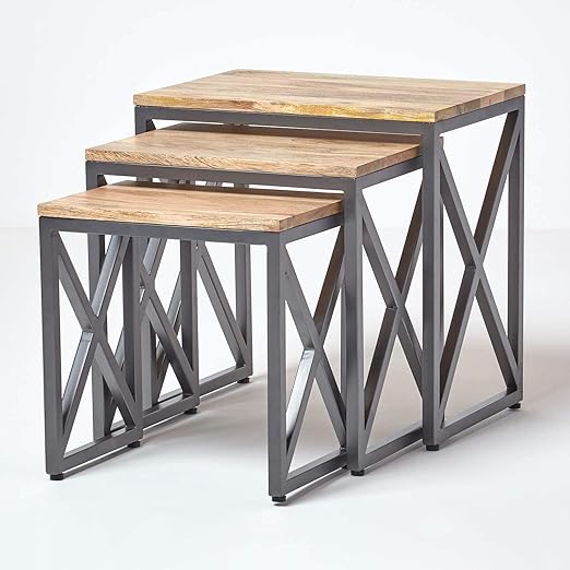 Homescapes Industrial Nest Of 3 Tables With X Shape Legs 50cm