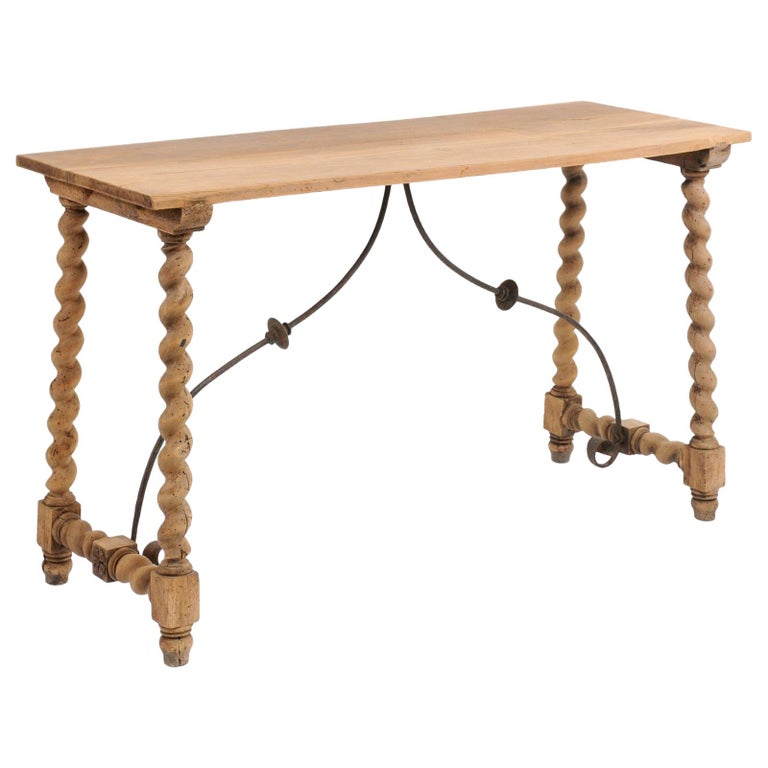 Spanish 1920s Baroque Style Oak Console Table With Barley Twist